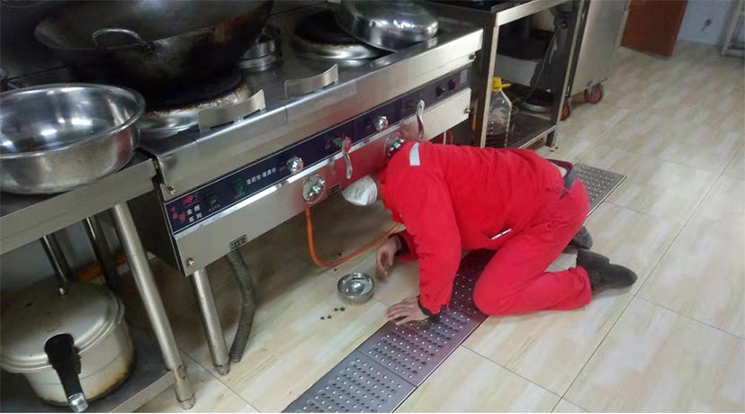 当巡查到食堂用气地点时,检漏仪发出了警报,同时闻到一股刺鼻的气味。孙伟立即对食堂供气管道和用气设备进行了全面仔细排查,发现灶具下方有两处接头漏气,但是非常不方便操作。孙伟顾不得地面的污渍,躺下身体,钻到灶具下方进行维修,经过1个多小时的奋战,终于处理好漏气点。