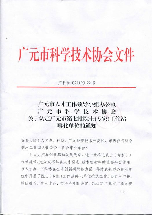 近日,广元市天然气有限责任公司被广元市人才工作领导小组办公室、广元市科学技术协会认定为广元市第七批院士(专家)工作站孵化单位。