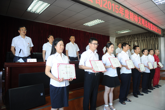 为引导公司全体员工积极参与省级文明单位创建工作,全面提升公司员工整体素质,推动公司精神文明、物质文明、政治文明建设同步协调发展,7月8日公司组织召开了2015年度“文明科室”、“文明家庭”、“文明个人”表彰活动。